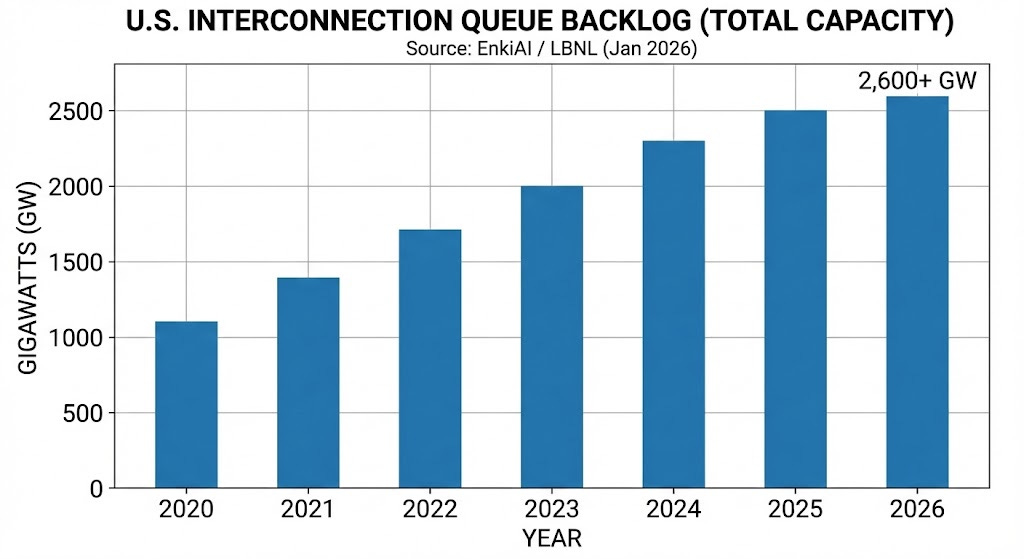[6] US Interconnection Backlog: Lawrence Berkeley National Laboratory (Jan 2026). Queued Up: Characteristics of Power Plants Seeking Interconnection.